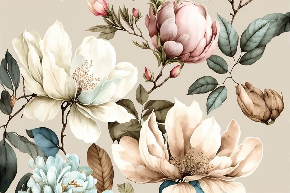 Fototapeta Akwarela piwonie na tle ecru #wf500