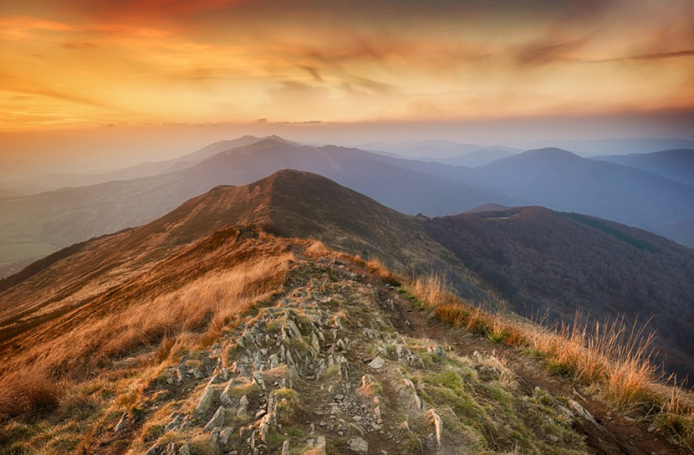 Fototapeta Jesienny zachód słońca w Bieszczadach #wf1583