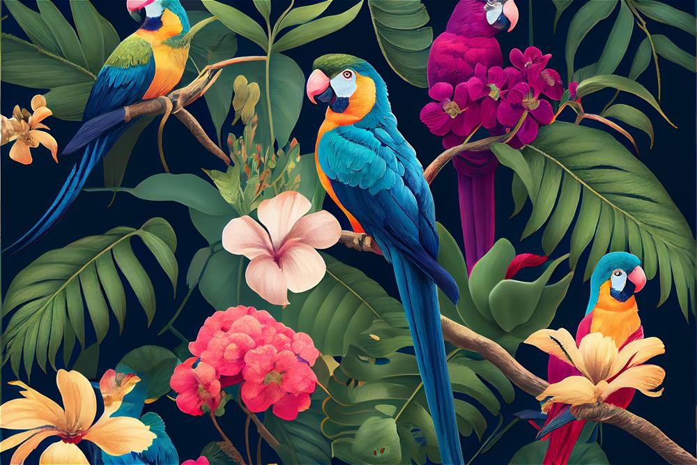 Fototapeta Kolorowe papugi w tropikach #wf378