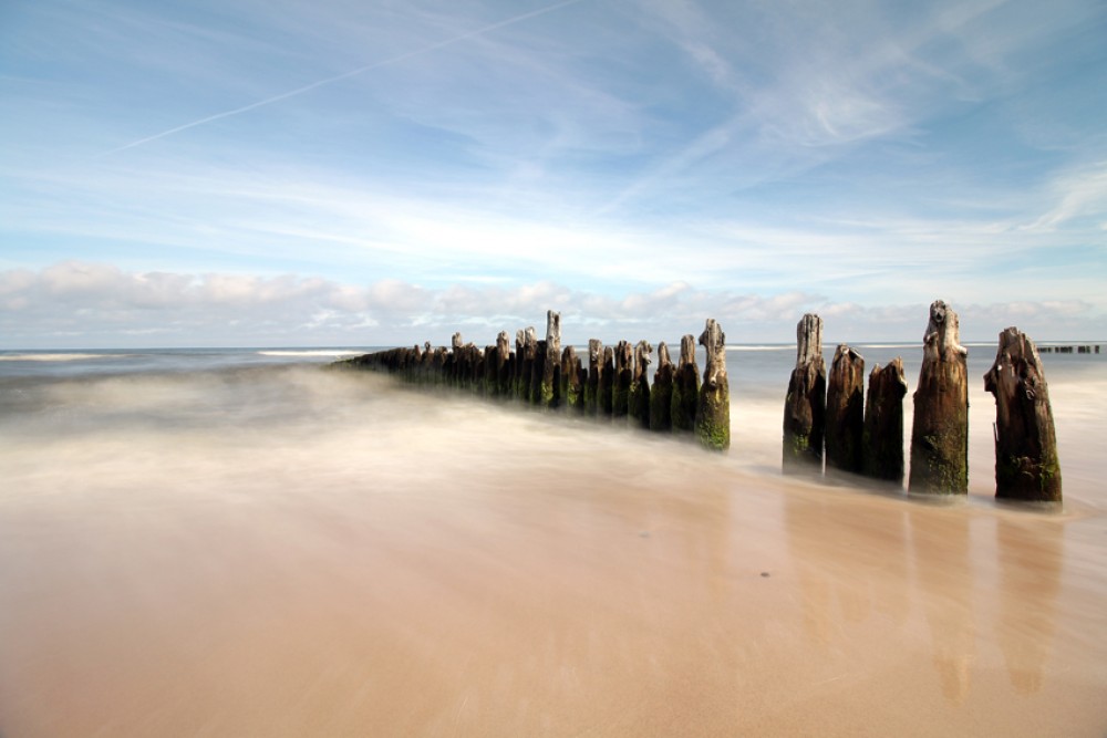 Stwórz w swoim domu miejsce pełne harmonii i nadmorskiego klimatu. Fototapeta Nadmorski pejzaż – falochrony nad Morzem Bałtyckim pozwoli Ci każdego dnia cieszyć się spokojem i pięknem Bałtyku.
