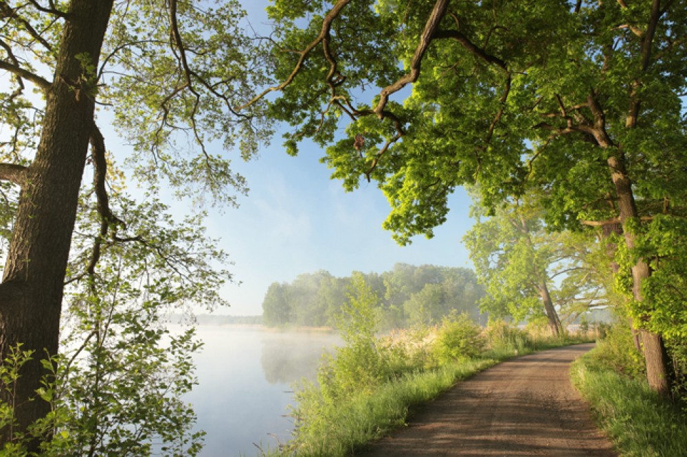 Wybierz fototapetę Polna droga na skraju lasu obok jeziora i odkryj, jak krajobraz natury może odmienić Twoje wnętrze!