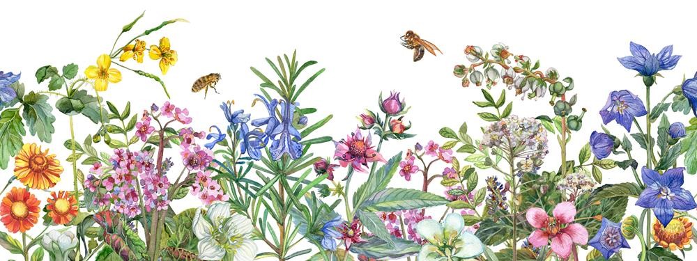 Fototapeta Pszczoły, polne kwiaty i zioła #wf629
