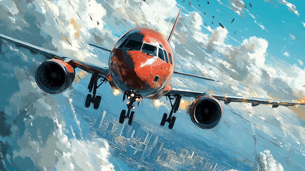 Wzór: Samolot nad miastem w otoczeniu chmur