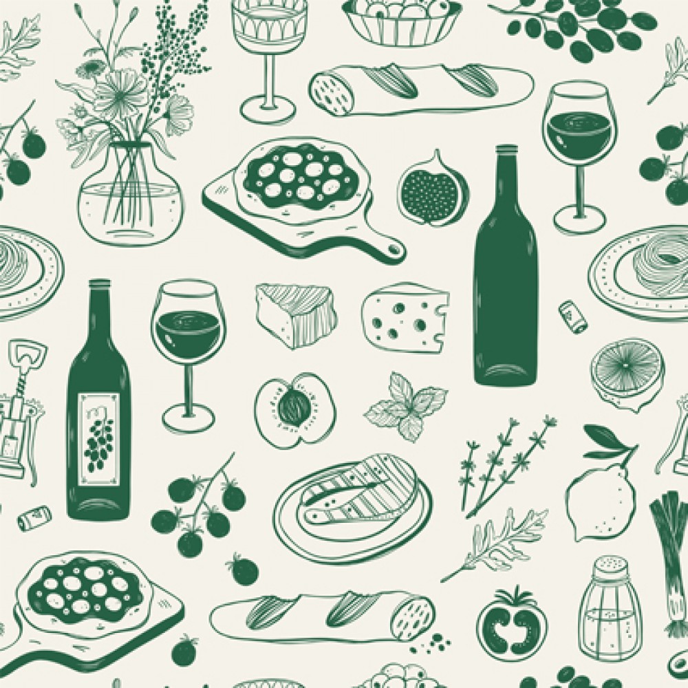 Fototapeta Śródziemnomorska kuchnia - ręcznie rysowane tło #wf1364