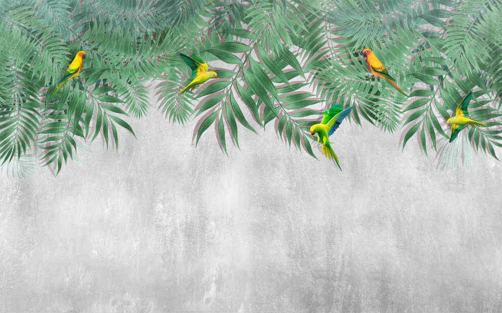Fototapeta Tropikalne Liście i kolorowe papugi #wf730