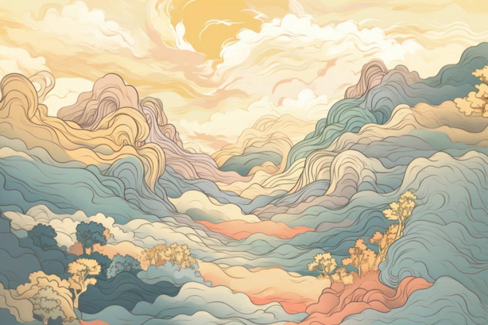 Wzór: Wzgórza i chmury w stylu secesji
