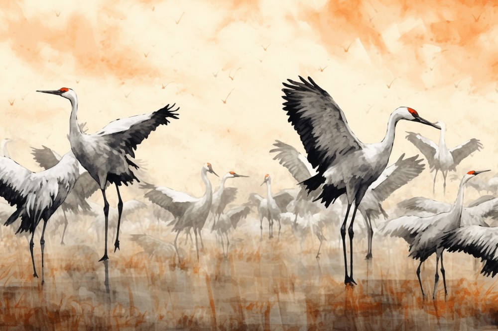 Dodaj do swojego wnętrza odrobinę spokoju i elegancji z fototapetą Żurawie w barwach natury – połączenie naturalnego piękna i artystycznego wyrazu, które podkreśli wyjątkowy charakter Twojego domu.